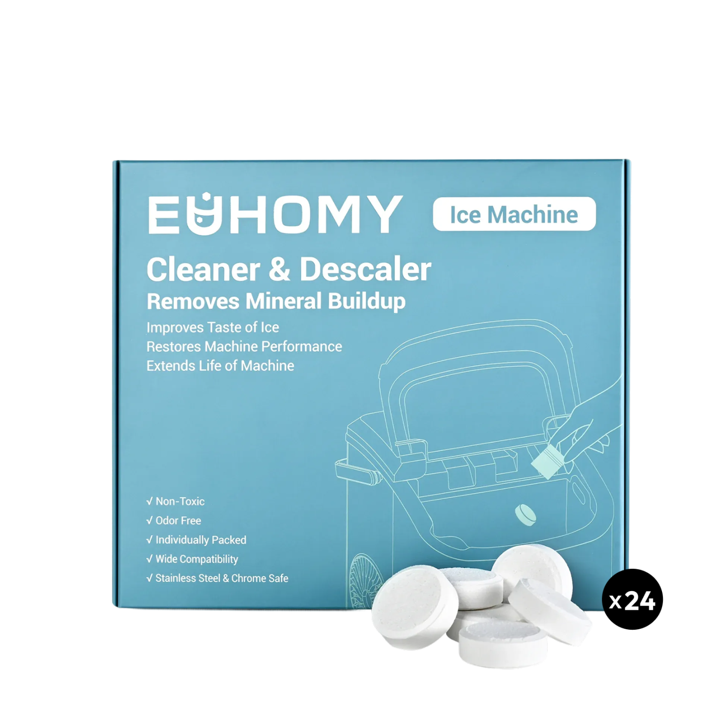 Euhomy Ice Maker Cleaner - 24 Clean Tablets, Powerful Cleansing