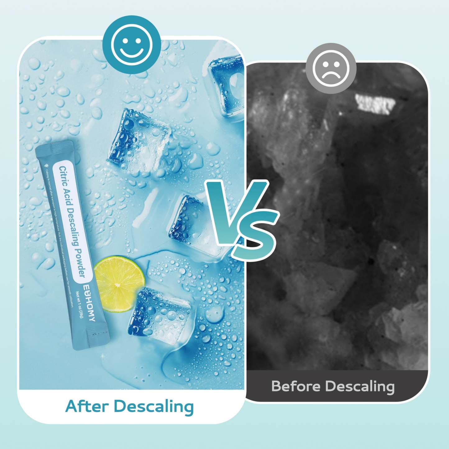 Euhomy Ice Maker Cleaner - Organic Citric Acid, Safe and Odor Free, 4 Individual Packs, Powerful Cleansing