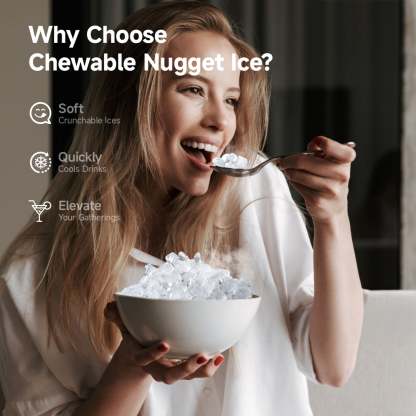 - 【Chewable&Crunchable Nugget Ice】:Like Chewing Ice?EUHOMY countertop nugget ice maker give you the ideal crunchable pellet ice, the nugget ice produced by our pebble ice maker machine is not only soft but also has authentic flavors, Whether you enjoy it on its own or add the pebble ice to cocktails, sodas, and more, all are great choice.